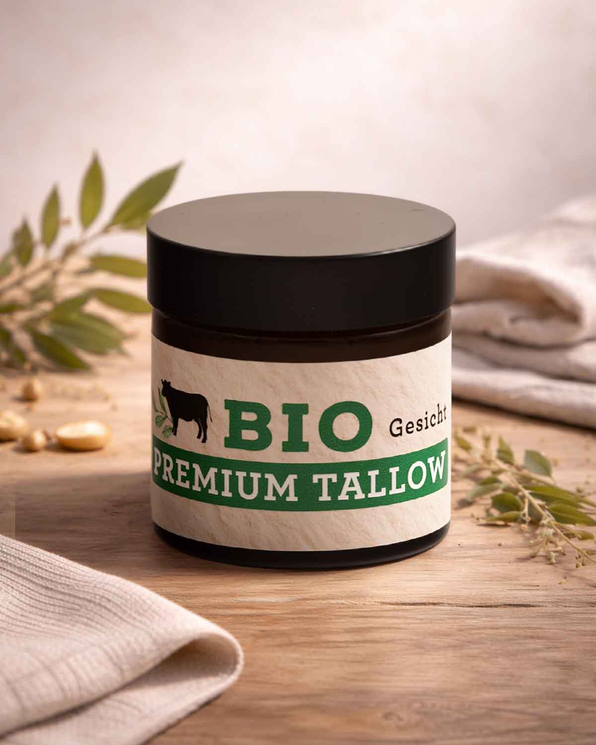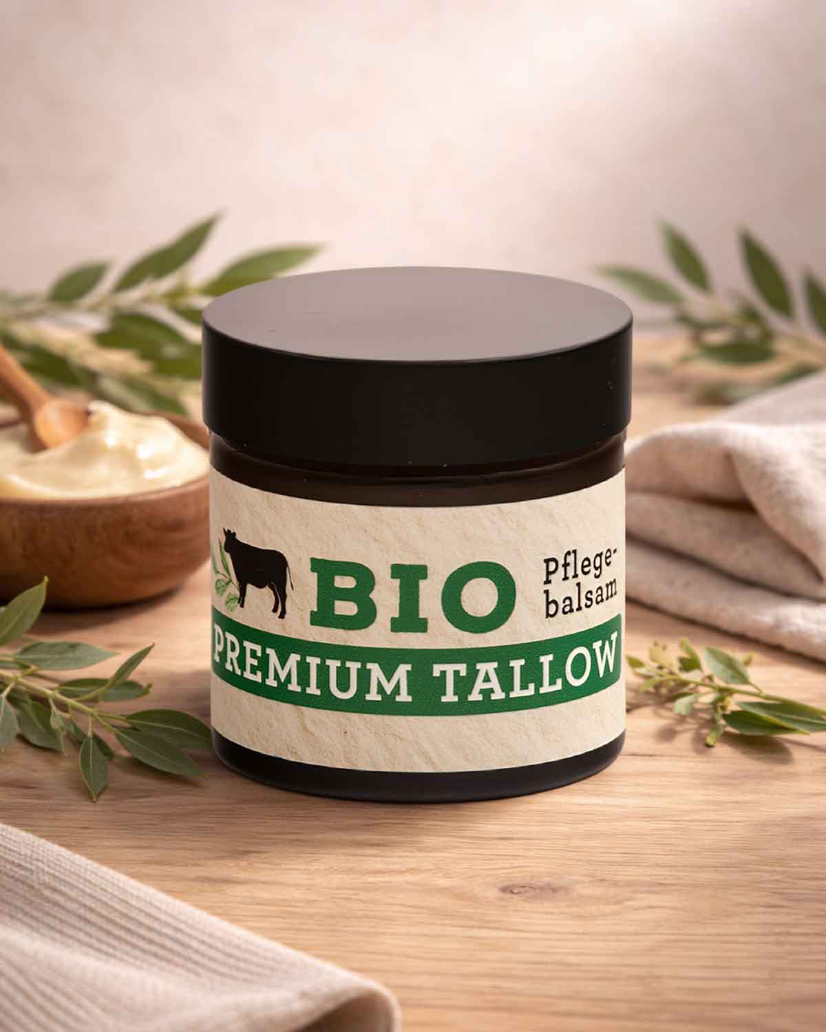 Mit Bio Premium Tallow finden Sie eine bewusst reduzierte und besonders hautverträgliche Pflege auf Basis von reinem Bio Rindertalg. Dieser stammt aus unserer kontrollierten Bio Haltung und ist in seiner Zusammensetzung dem natürlichen Hautfett sehr ähnlich.
